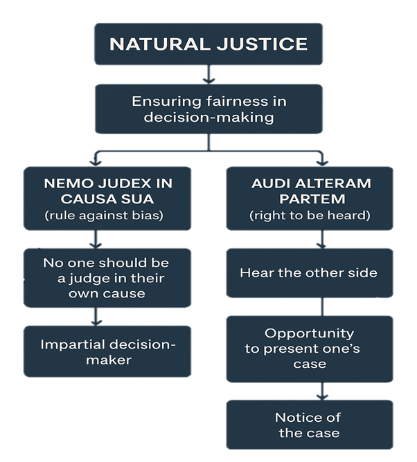 Natural justice is not merely a procedural formality it is the soul of justice. Whether in a classroom, courtroom, or corporate office, it ensures that every person is treated fairly, heard properly, and judged impartially.